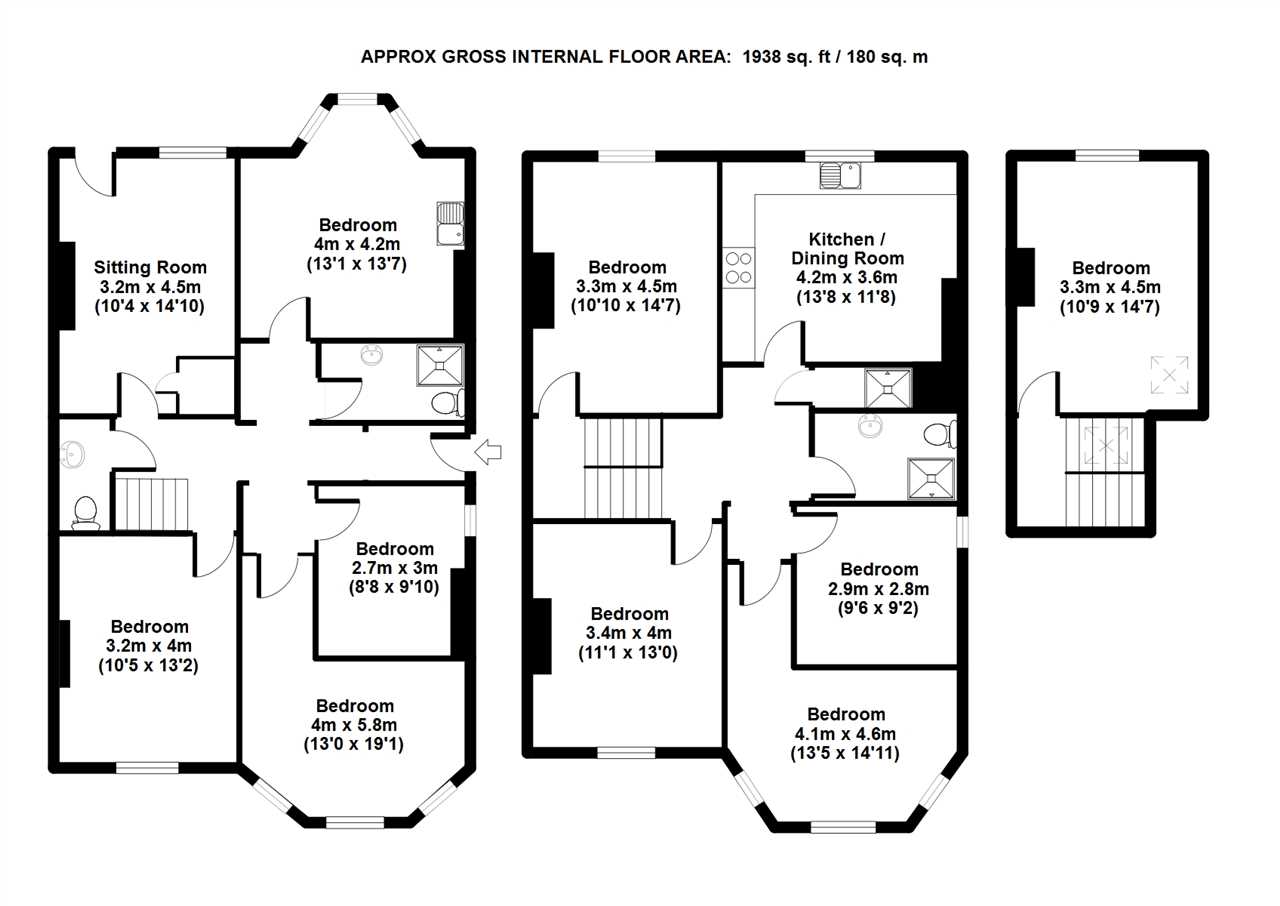 This maisonette apartment within a period property is let furnished, comprising 9 double bedrooms, 1 reception room, kitchen with washing machine, fridge, freezer, cooker as well as having 3 shower rooms. There is a private rear garden and the property is heated by gas central heating.